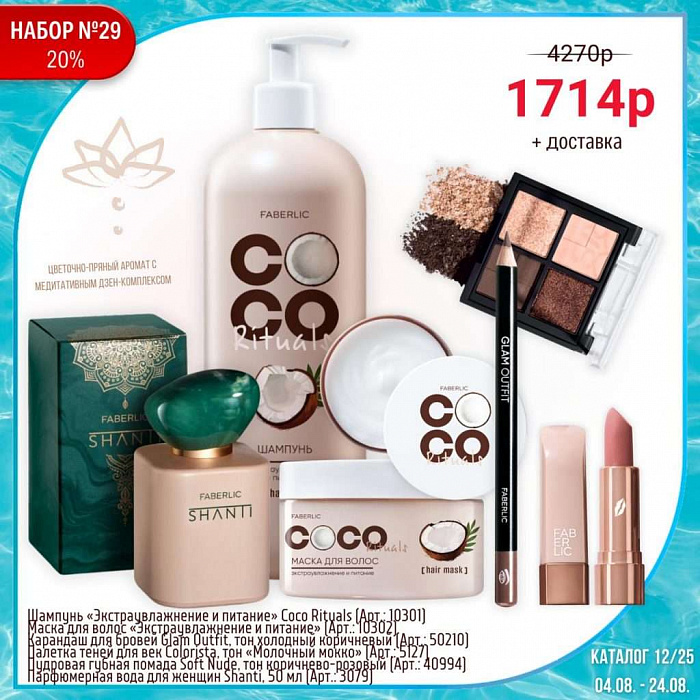 Для оформления заказа, выбирайте понравившийся набор и нажмите кнопку "купить набор", далее выбирайте "Зарегистрироваться и заказать", если это ваш первый заказ в Faberlic или "Войти и заказать", если уже есть кабинет клиента.